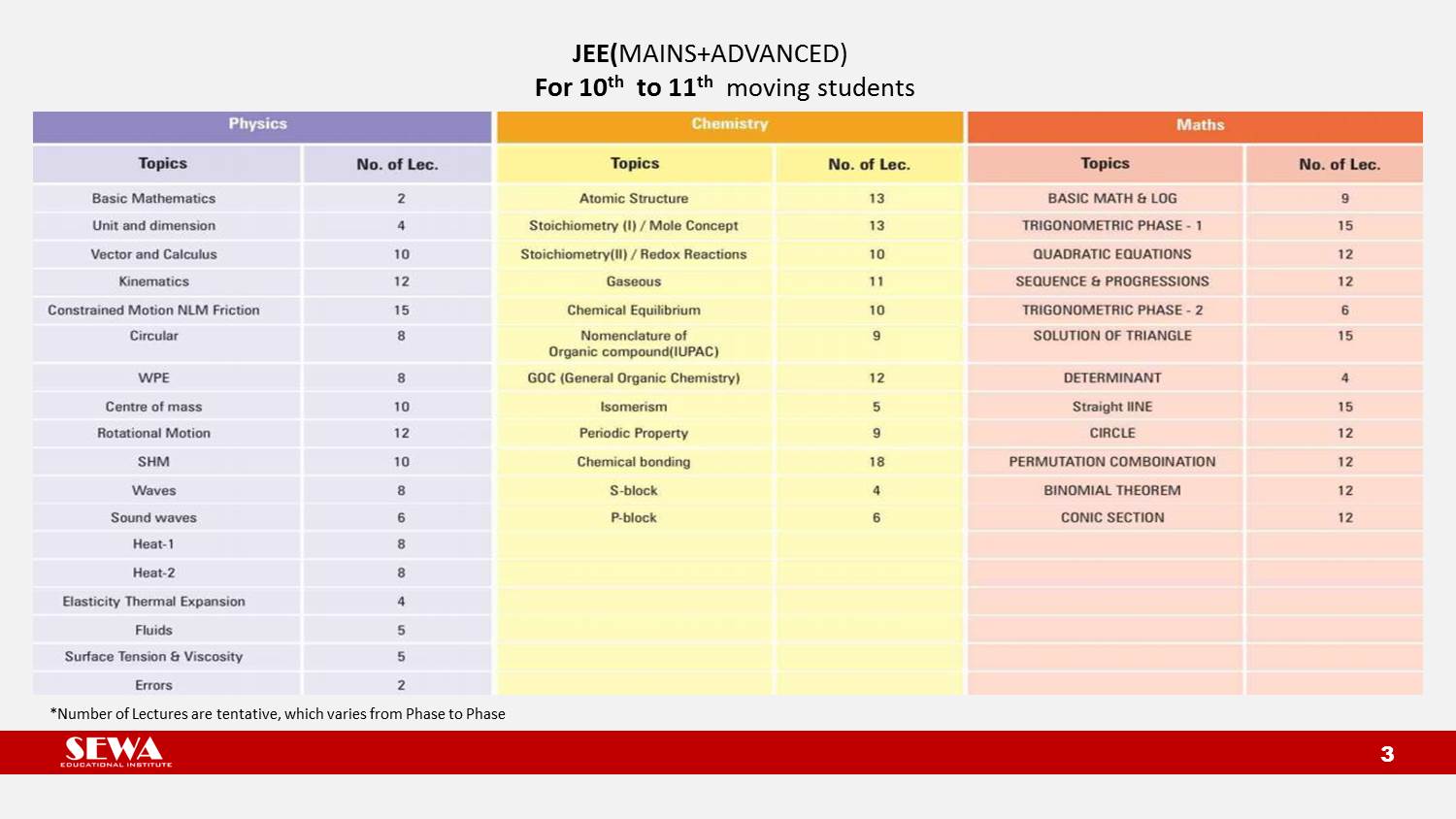 Course-wise year long planner is prepared and provided to all the enrolled students in the beginning of academic session. It consists of date-wise description of various chapters along with the number of lectures & duration.